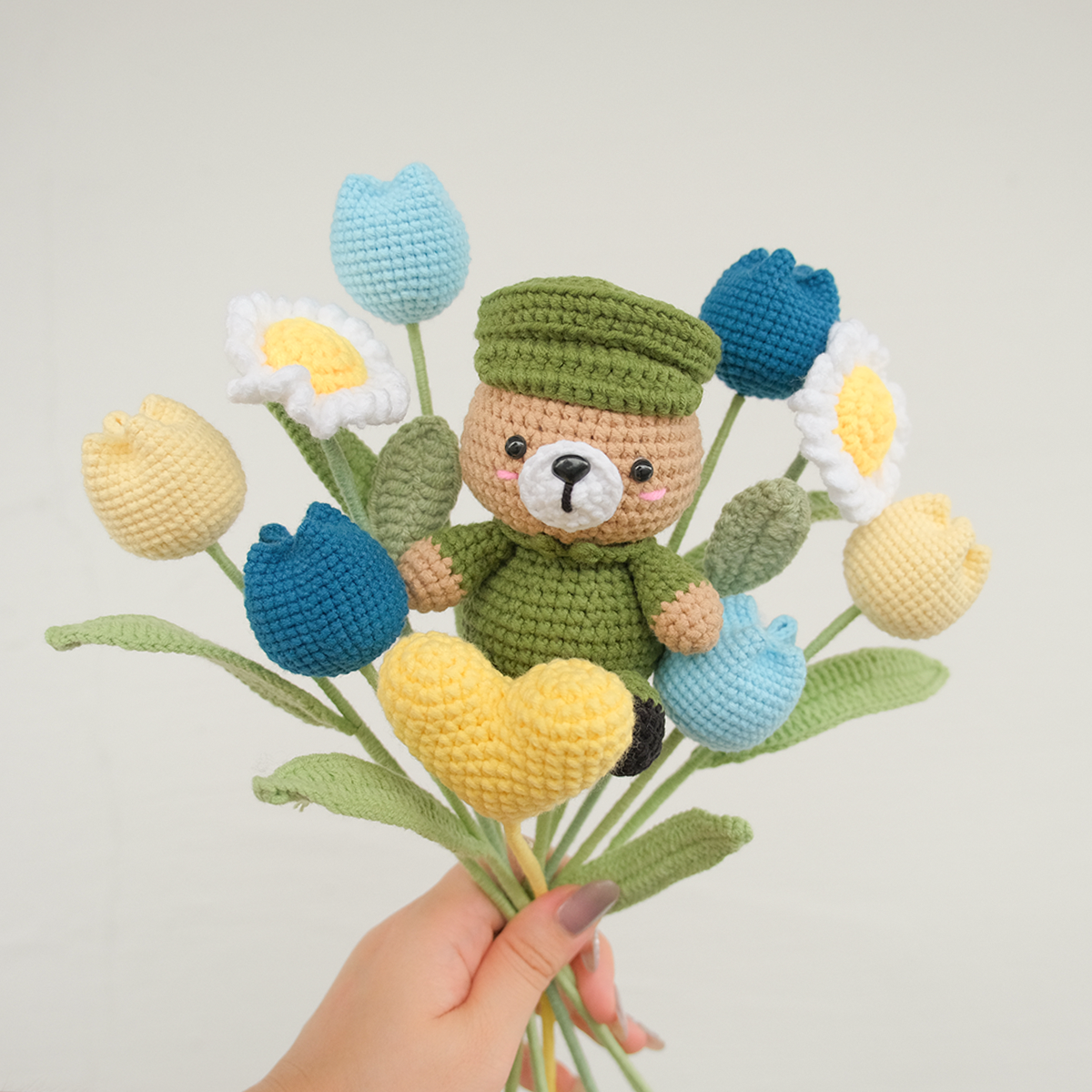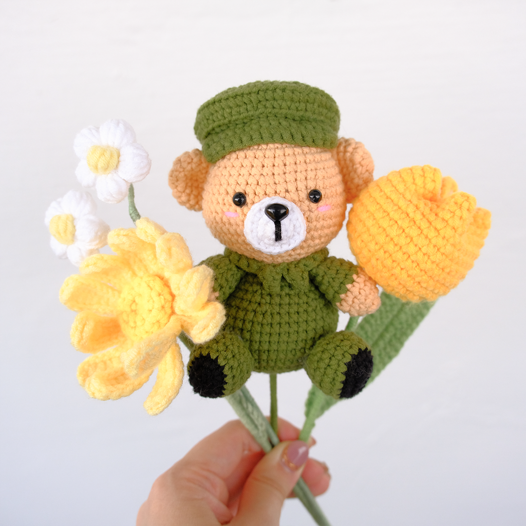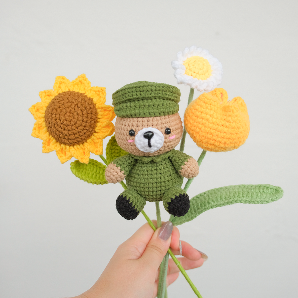 - Flower types: 1x Army Bear character with pairing crochet flowers