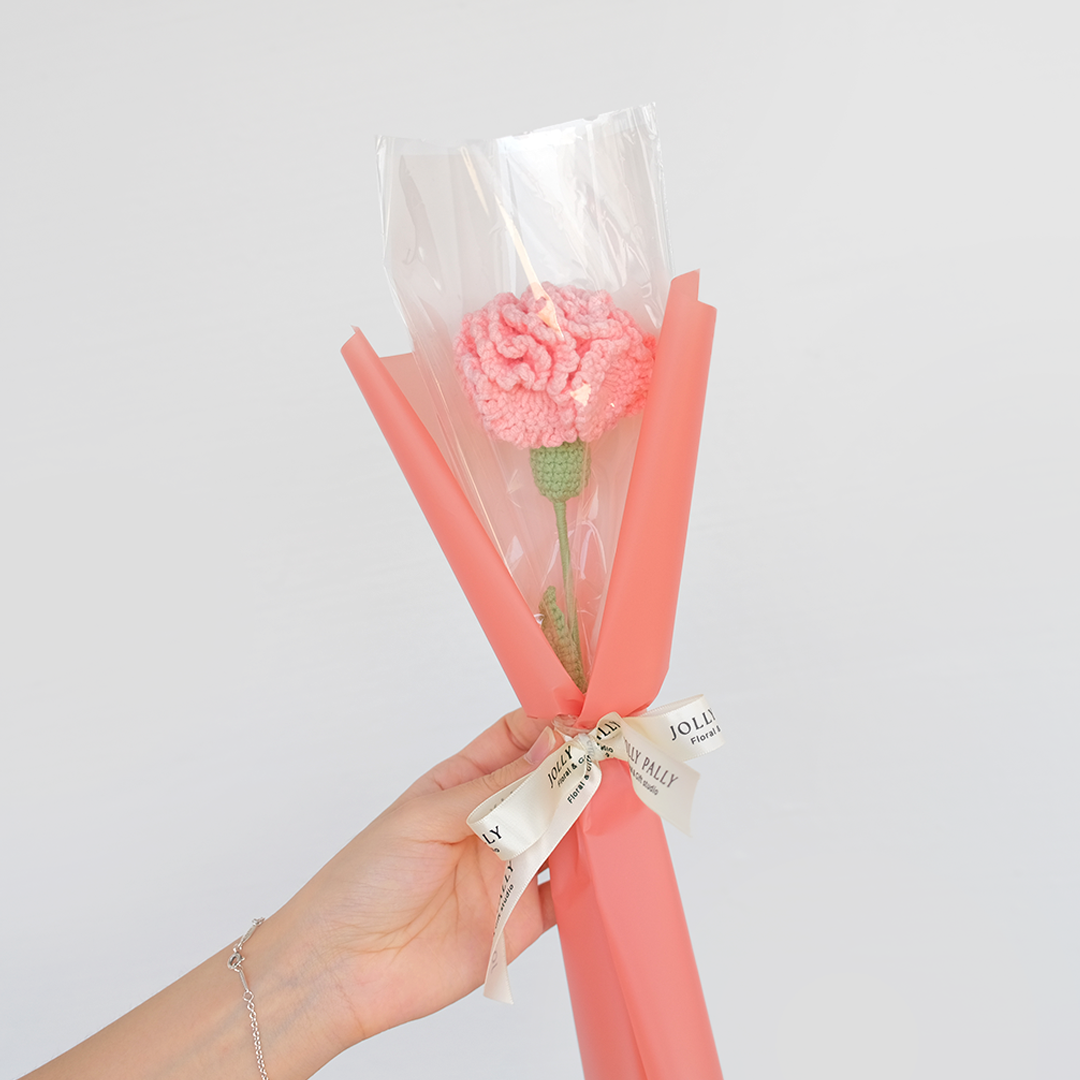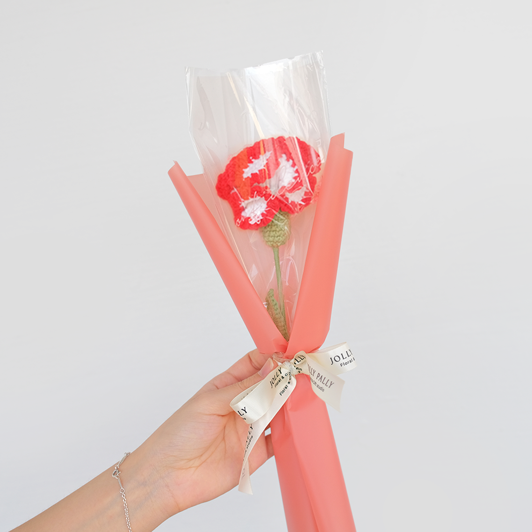 - Flower type: Crochet carnation (pink/red)