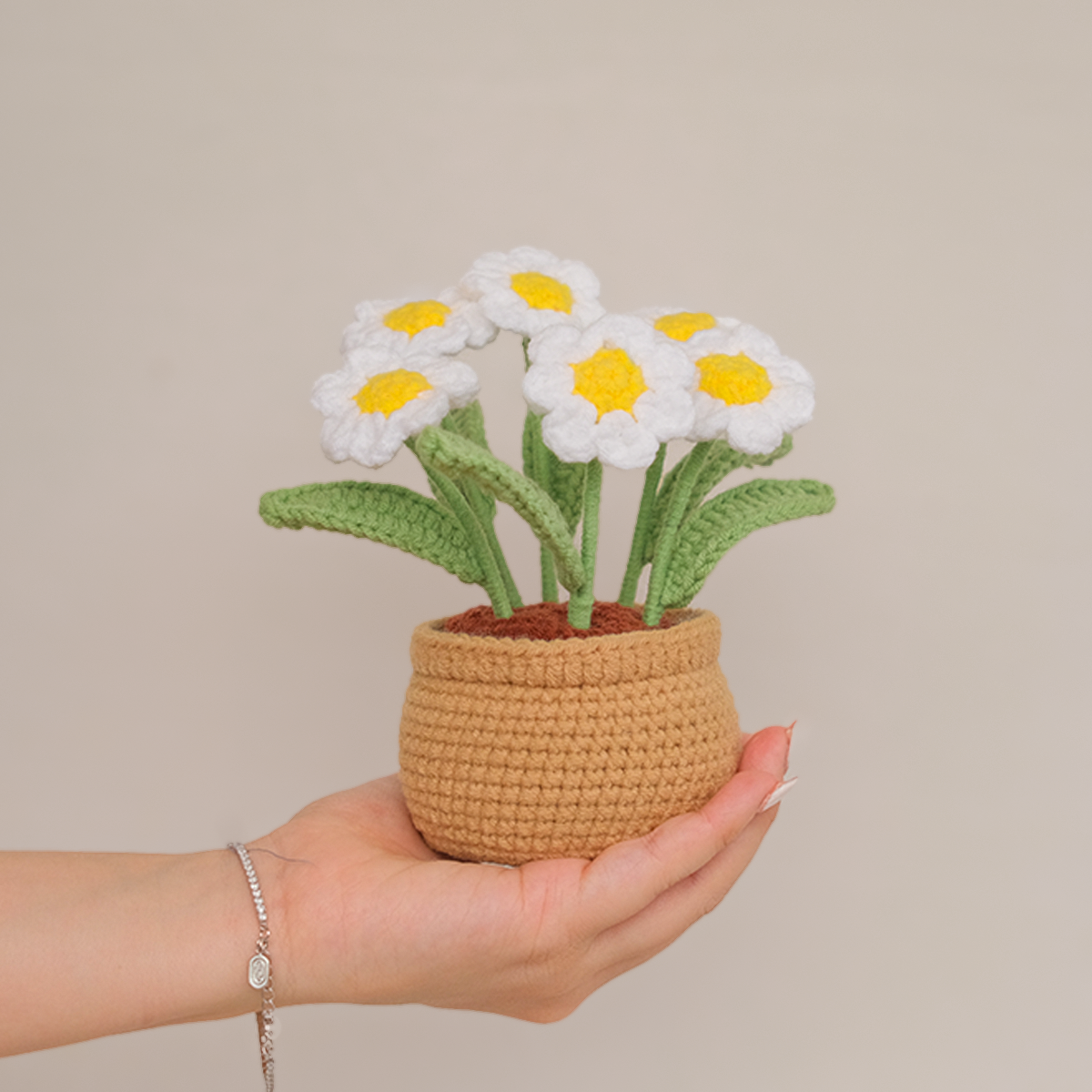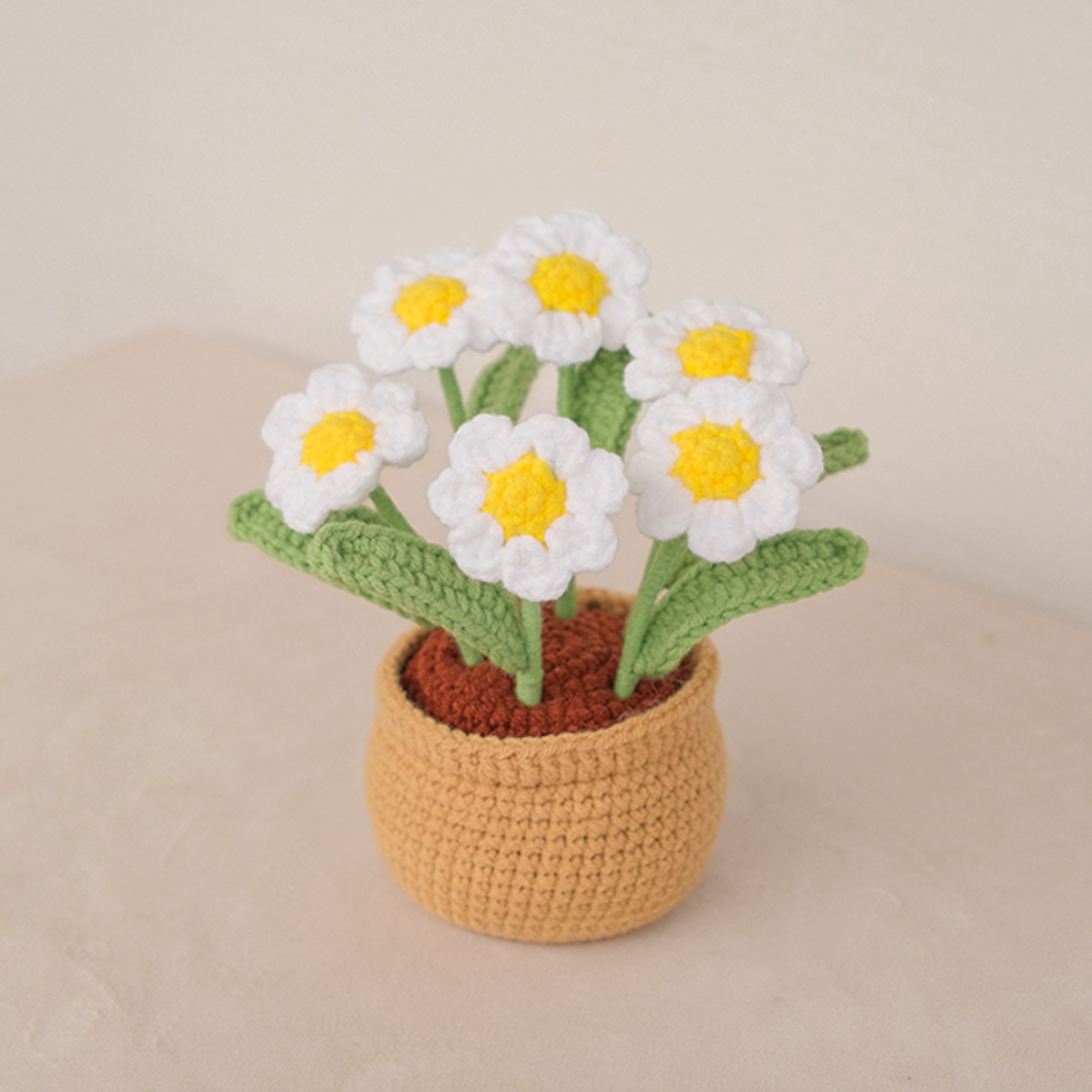 - 6x crochet Daisies in crochet pot