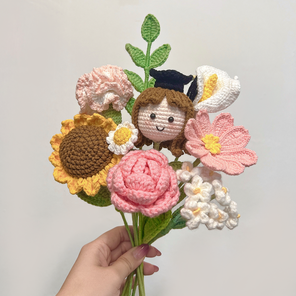 Grad Bloom - Crochet Graduation Doll and Sunflower Bouquet