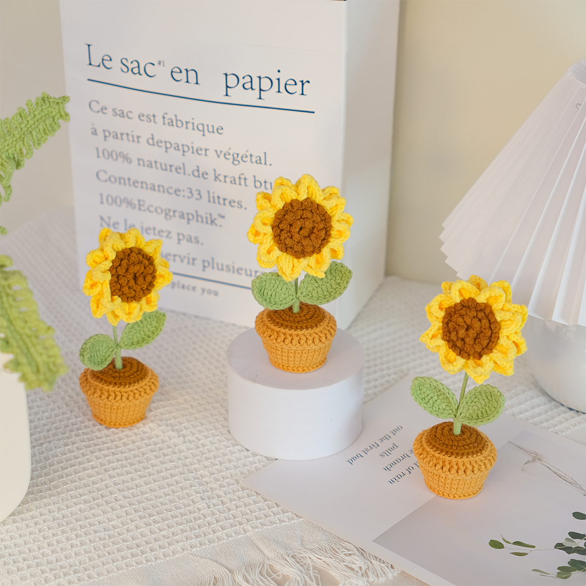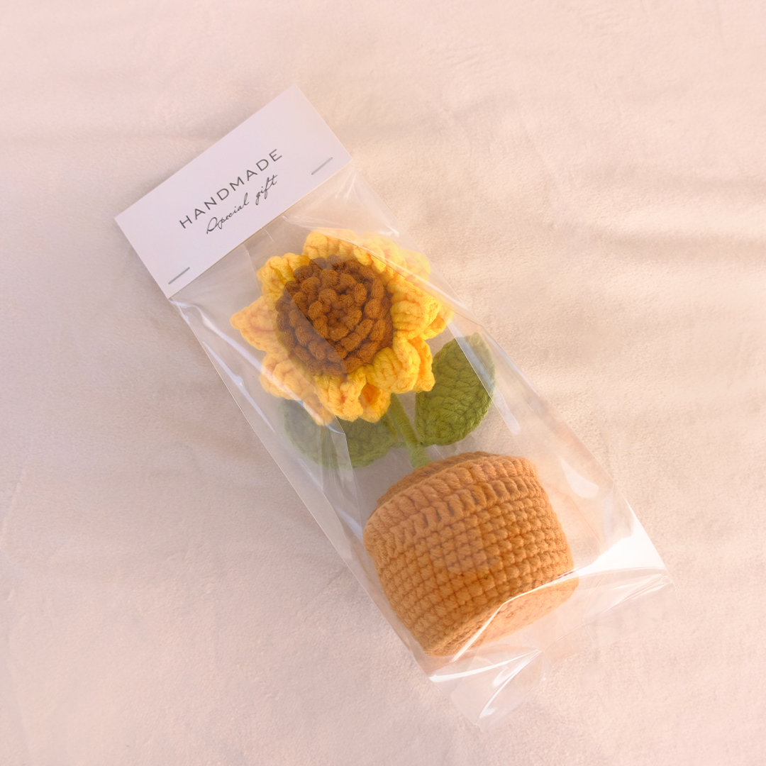 Our Crocheted Mini Sunflower Pot includes:Â