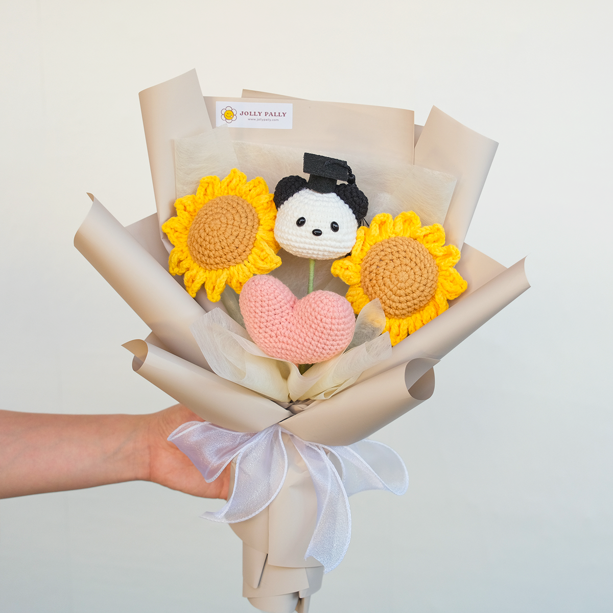 Our Crocheted Panda Floral Bouquet includes:Ā