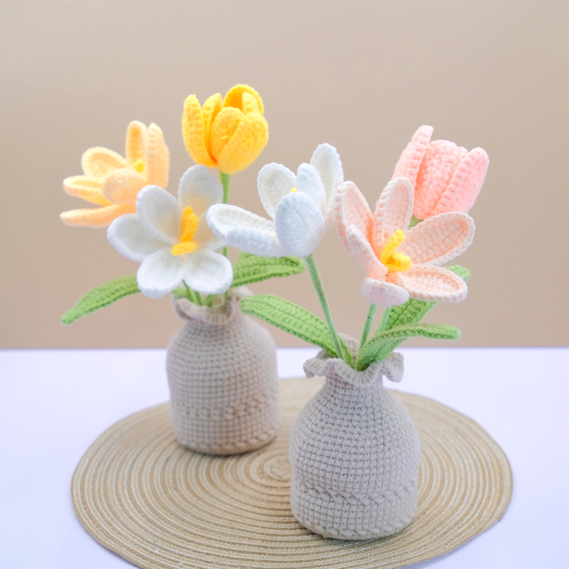 Crochet Tulips Vase - Handmade Crochet Plant Gift