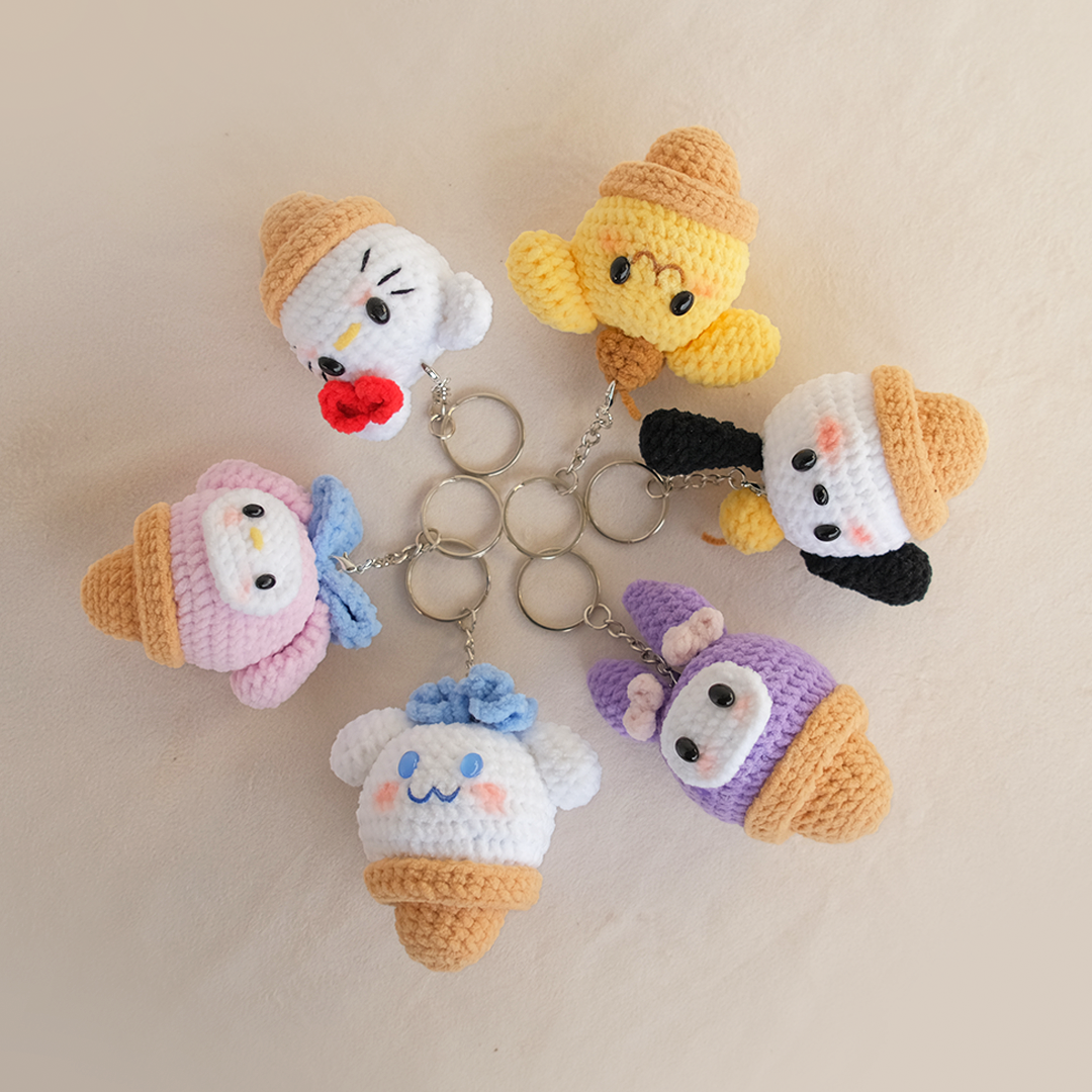 - Crochet Sanrio Characters (1 each design) in a ice-cream cone
