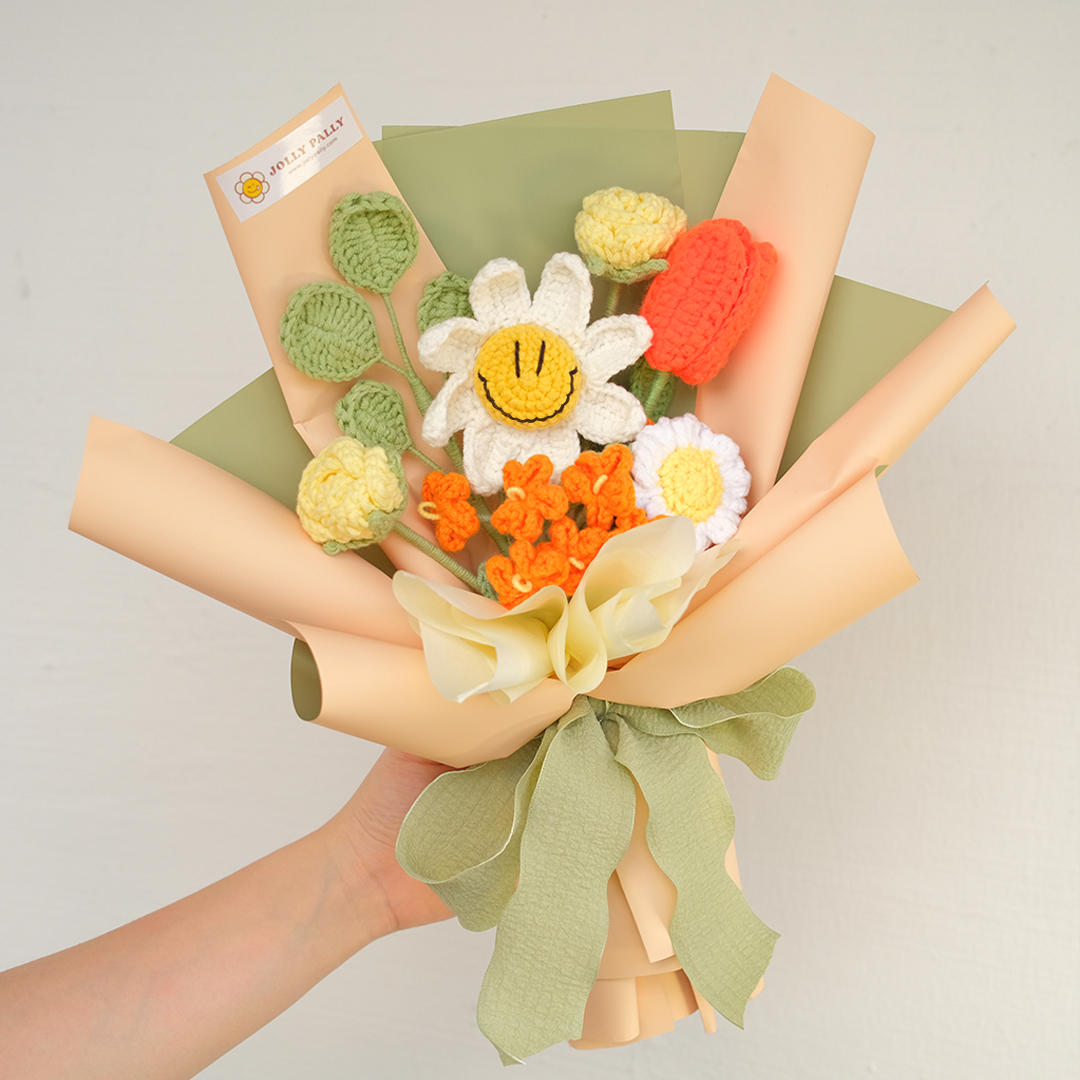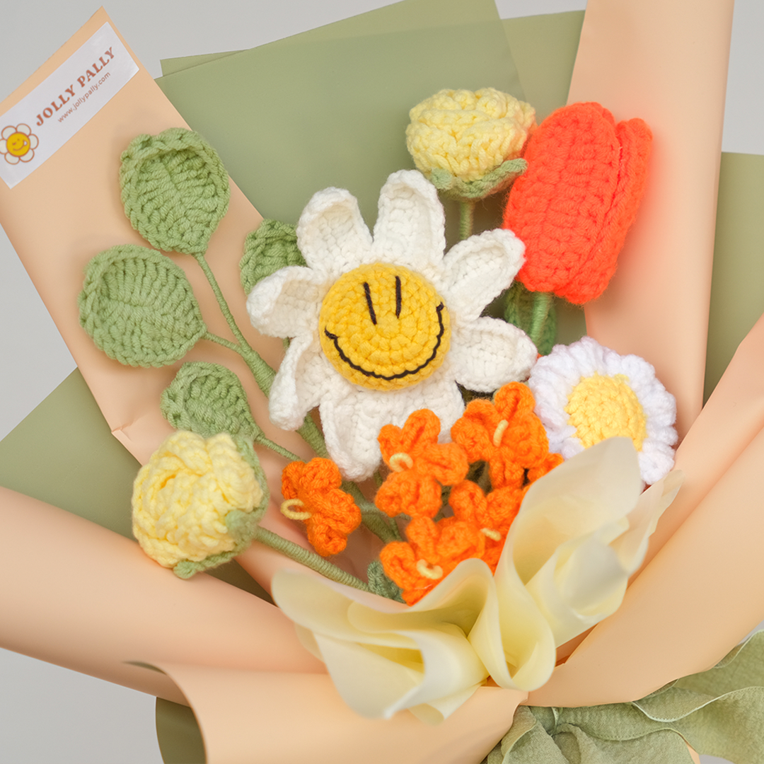 Our Smiley Daisy Crocheted Bouquet include:
